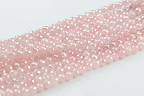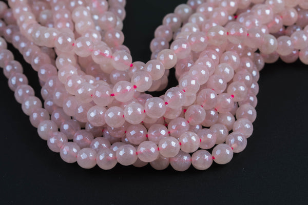 Natural Mystic Rose Quartz, High Quality in Faceted Round- 4mm, 6mm, 8mm, 10mm, 12mm- Full 15.5 Inch Strand AAA Quality Gemstone Beads