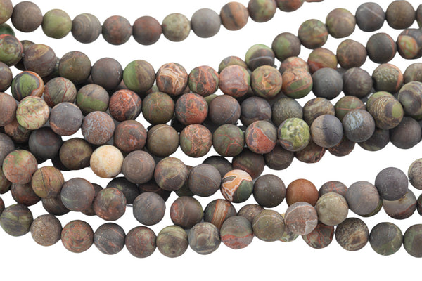 Natural New Ocean Jasper High Quality in Matte Round 8mm, 10mm, 12mm- Wholesale Pricng- Full 15.5 Inch Strand Gemstone Beads