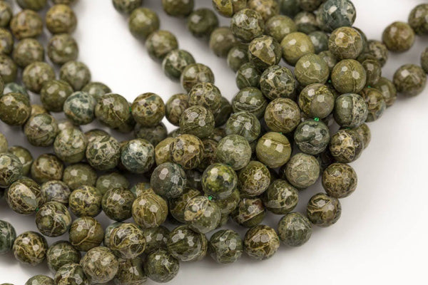 Natural Ocean Bree Jasper- Faceted Round sizes. 4mm, 6mm, 8mm- Full 15.5 Inch strand AAA Quality Gemstone Beads