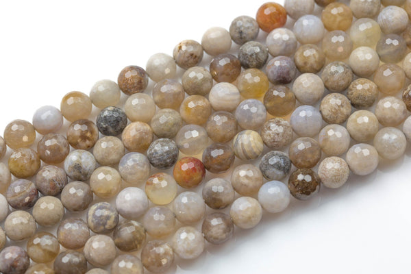Natural Ocean Fossil Agate- Facted Round sizes. 4mm, 6mm, 8mm, 10mm, 12mm, 14mm Gemstone Beads