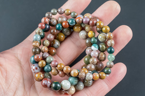 Natural Ocean Jasper Round Size 6mm and 8mm- Handmade In USA- approx. 7" Bracelet Crystal Bracelet