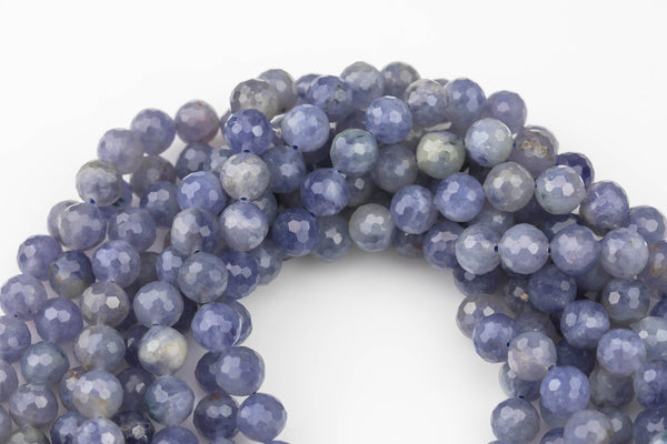 Natural Pale Iolite Beads Full Strands-15.5 inches- Nice Size Hole- Diamond Cutting, High Facets-Nice and Sparkly-Faceted Round