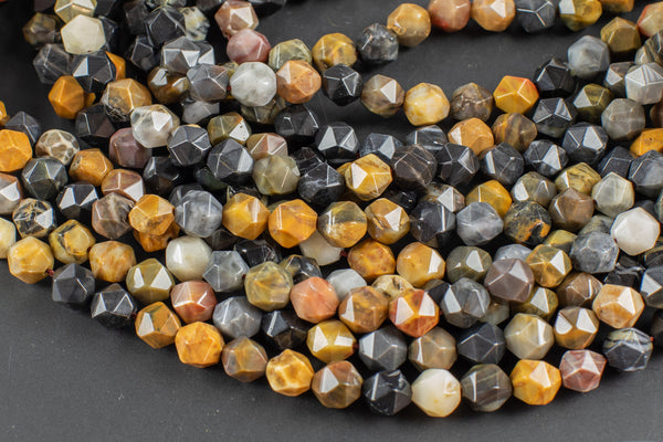 Natural Petrified Wood- Hexagon Shape- Grade A High Quality- 8mm and 10mm- Full Strand 16" AAA Quality Gemstone Beads