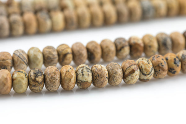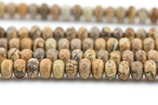 Natural Picture Jasper Faceted Roundel 4mm and 8mm- full 16 inch strand Gemstone Beads
