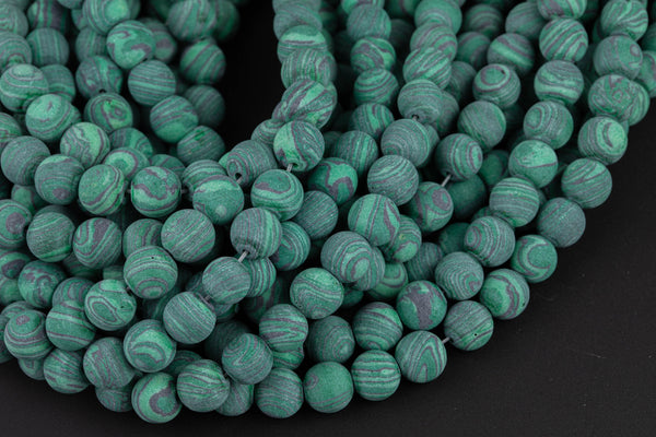 Natural Reconstituted Malachite Matte round sizes 6mm, 8mm, 10mm, 12mm- In Full 15.5 Inch Strand Gemstone Beads