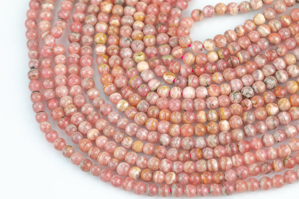 NATURAL Rhodochrosite Smooth round beads in full strands. 3.5-4.0mm- 15.5nch strand- Natural No Dye