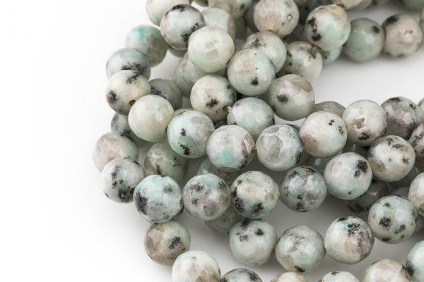 Natural Sky Mountain Blue Kiwi Jasper, High Quality in Faceted Round- 4mm, 6mm, 8mm, 10mm, 12mm, 14mm- Full Strand 16 inches Gemstone Beads