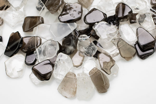 Natural Smokey Quartz and Quartz beads, Flat Nugget Drops Brios- Full Strand 15 inch Strand- High Polish-15x18mm