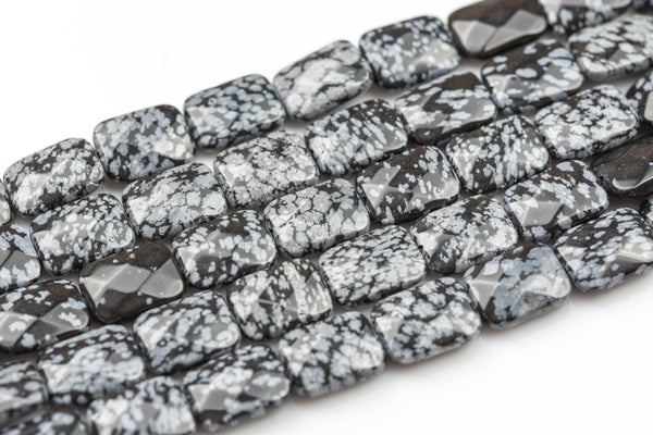 Natural Snow Flake Obsidian- Faceted Rectangular Beads-12x16mm- 13 Pieces- Special Shape Gemstone Beads