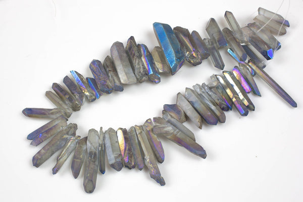 Natural Titanium Plated Brazilian Quartz Freeform Pieces, Slightly Graduated ONE FULL STRAND. Appx 46 Pieces. Gemstone Beads