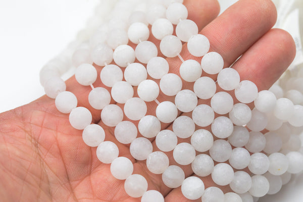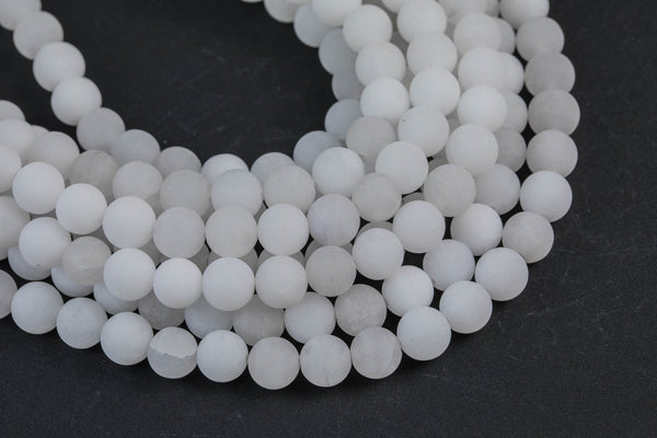 Natural White Moonstone Jade, High Quality in Matte Round, 6mm, 8mm, 10mm, 12mm -Full Strand 15.5 inch Strand, AAA Quality Gemstone Beads