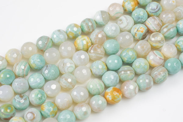 Ocean Teal Banded Agate, High Quality in Faceted Round, 8mm and 10mm -Full Strand 15.5 inch Strand