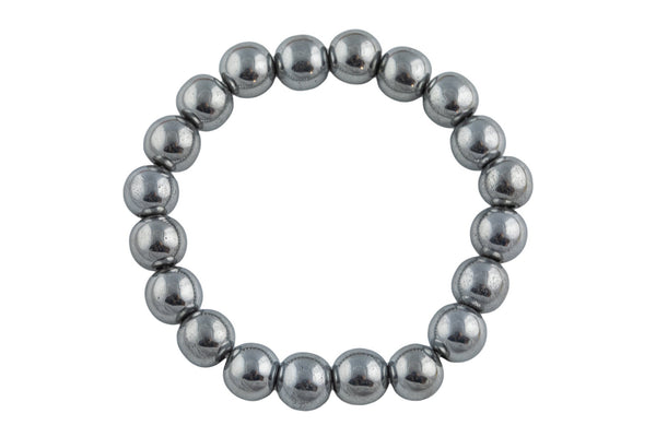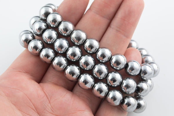 Platinum Hematite Bracelet Round Size 10mm and 12mm - Handmade In USA Gemstone Crystal Bracelets - Handmade Jewelry - approx. 7-7.5"- LGS
