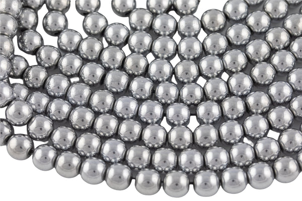 This listing is for one strand of platinum plated hemitite beads.