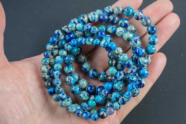 Royal Blue Aquaterra Jasper Bracelet Round Size 6mm and 8mm - Handmade In USA - Natural Gemstone Crystal Bracelets - approx. 7"