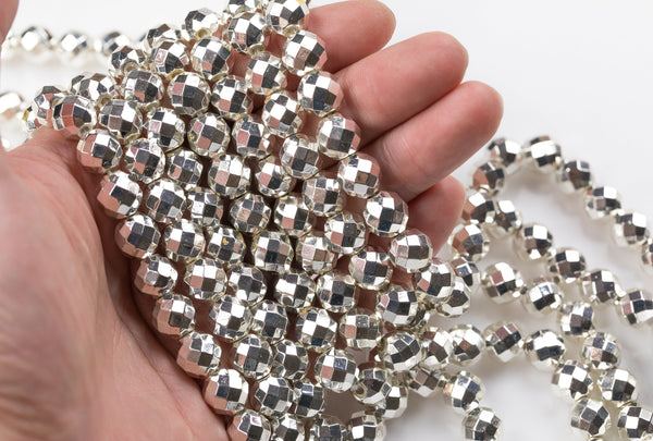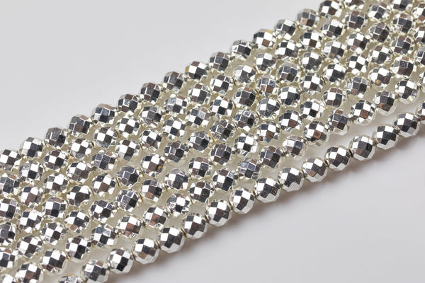 Beautiful strand of faceted hematite with a thick sterling silver coating. All strands are 15.5 inches (all lengths are an approximation). long, full strands.
