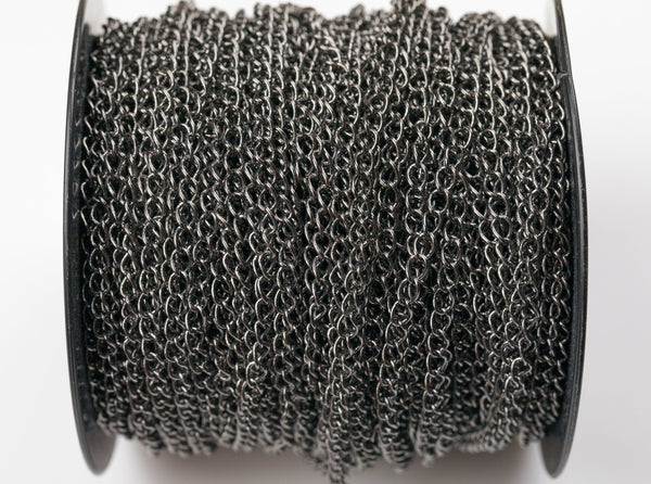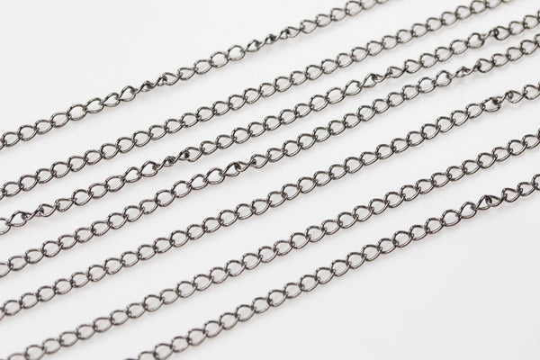 SOLDERED High Quality Gunmetal Plating Strong Flat Chain - 2 Sizes: 3mm or 4mm Width - 1 yard / 3 feet - Can be used for extenders!