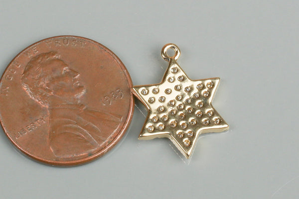 Star of David CZ Gold Pave 15mm Pendant