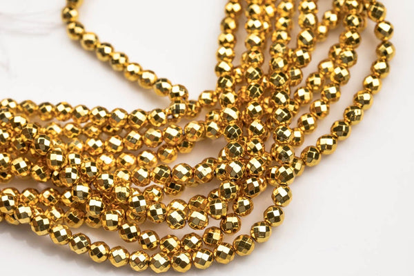 THICK GOLD COATED Hematite Faceted Round- 6mm, 8mm, 10mm - Full Strand 15.5 inch Strand - High Quality Gold Plated