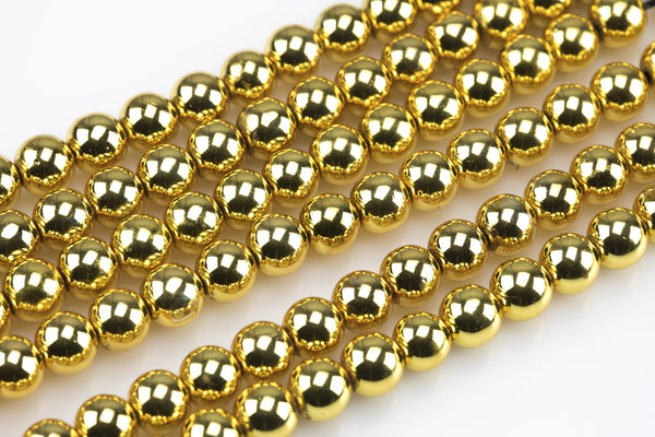 THICK GOLD COATED Hematite Smooth Round - 2mm 3mm 4mm 6mm 8mm 10mm - Very High quality gold plating / coating