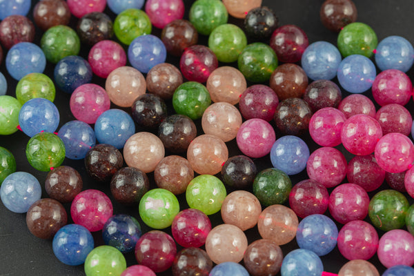 Tourmaline Jade Beads Smooth Round 6mm 8mm 10mm Full Strand 15.5 Inches Long AAA Quality Multicolor Jade Beads