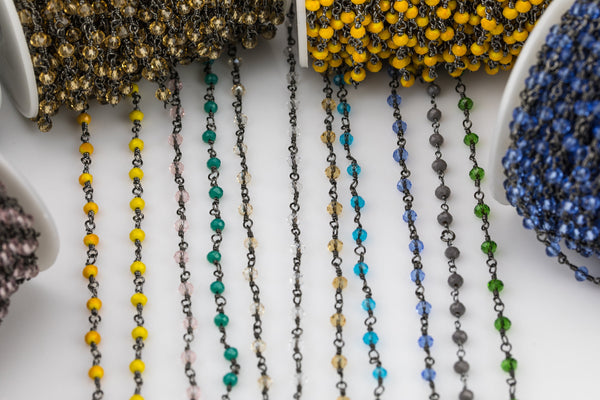 WHOLESALE Rosary Chain Gunmetal 3mm to 4mm Jade Crystal Rosary Chain...wire wrapped chain plated by the YARD