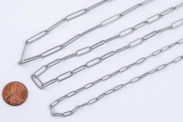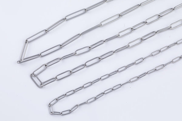 Stainless Steel Round Paperclip Chain - Yard or Full Spool - High Quality Polished Stainless Steel - Hypoallergenic 3mm 4mm 5mm