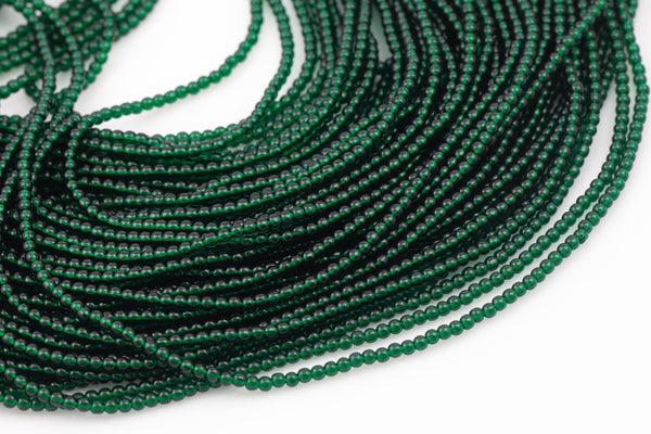 2mm or 3mm Crystal Round -2 or 5 or 10 STRANDS- Extra Fine-15.5 inches long about 100+ Beads -Dark Green