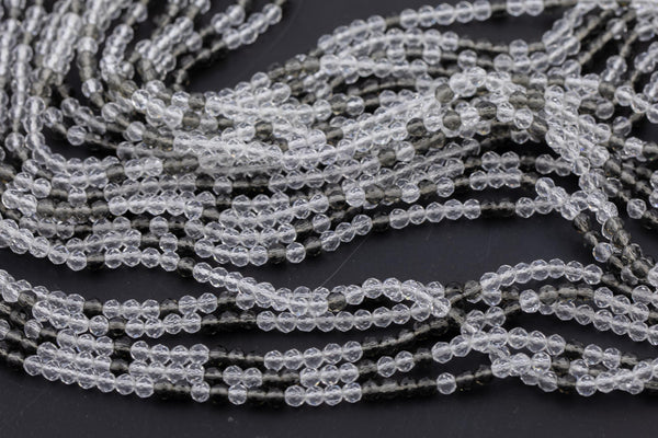 2mm or 3mm Crystal Round -2 or 5 or 10 STRANDS- Extra Fine-14 inches long about 100+ Beads - Clear Gray