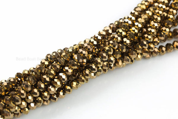 8mm Crystal Rondelle -1 or 5 or 10 STRANDS- Copper Metallic