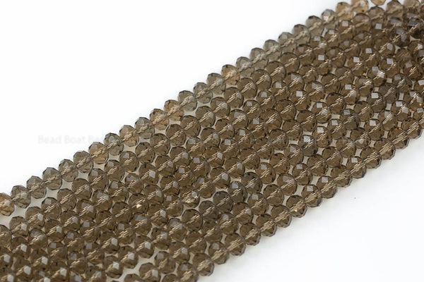 8mm Crystal Rondelle -2 or 5 or 10 STRANDS- Smokey Quartz