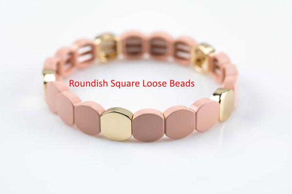 Enamel Beads, Roundish Square 2-Hole Beads for Bracelets, Trendy Jewelry Making Supplies, 5/10 pcs Per Order- 24 colors
