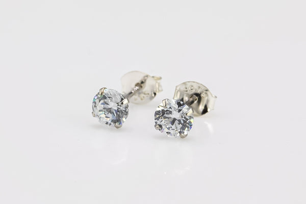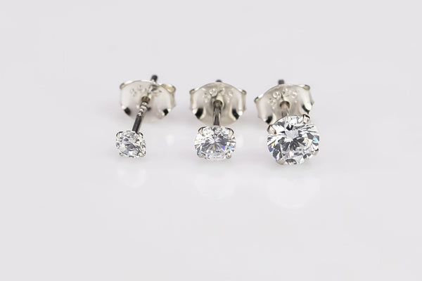 Classic Diamond Earrings • Round Diamond Solitaire Stud in White Gold Sterling Silver • Minimalist Earrings • Infinity Setting • Wholesale