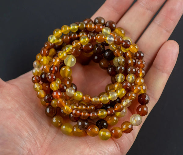 Ember Jade Bracelet Brown Round Size 6mm and 8mm Handmade In USA - Natural Gemstone Crystal Bracelets Handmade Jewelry - approx. 7"
