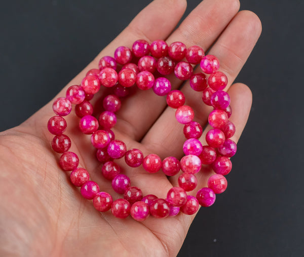 Fuchsia Jade Bracelet Round Size 6mm and 8mm Handmade In USA Natural Gemstone Crystal Bracelets Handmade Jewelry - approx. 7"