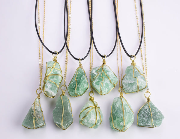 Green Aventurine Crystal Necklaces Handmade in USA Wire Wrapped Raw Natural Gemstone Crystal Necklace Handmade Jewelry Raw Green Aventurine