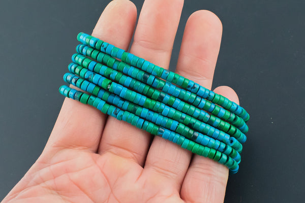 Green Turquiose- 2x4mm Heishi Stretchy Bracelet- 7 inches