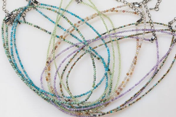 Natural GEMSTONE CHOKERS NECKLACES w/ Extender - 925 Sterling Silver Clasp - 13-14" with a 2" extender - perfect for layer or adding a charm