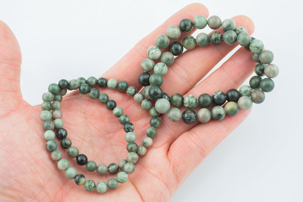 Natural Green Moss Jasper Bracelet Smooth Round Size 6mm and 8mm- Handmade In USA- approx. 7" Bracelet Crystal Bracelet