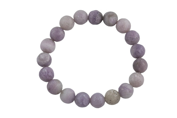 Natural Light Lepidolite Matte Round Size 10mm and 12mm- Handmade In USA- approx. 7-7.5" Bracelet Crystal Bracelet- LGS