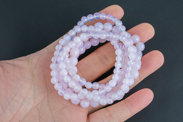Pink Faceted or Smooth Opalite Quartz Round Size 6mm and 8mm- Handmade In USA- approx. 7" Bracelet Crystal Bracelet