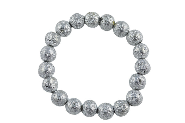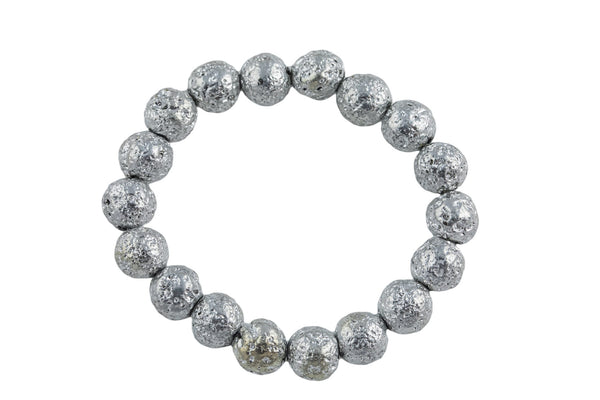 Platinum Lava Bracelet Round Size 10mm and 12mm - Handmade In USA Natural Gemstone Crystal Bracelets - Handmade Jewelry - approx. 7.5"- LGS