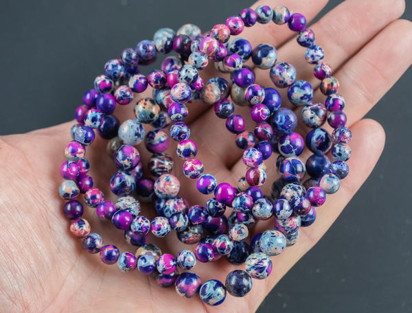 Royal Purple Aqua Terra Jasper Bracelet Round Size 6mm and 8mm- Handmade In USA Natural Gemstone Bracelets - Handmade Jewelry - approx. 7"