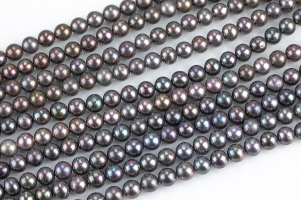 AA 6-7mm Natural Freshwater Pearls - Off Round 1 Full Strand- Light Peacock