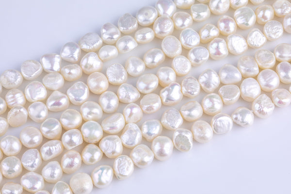 White Fresh Water Pearl Center Drill Nugget Beads 7-8mm 8-9mm 15" Strand