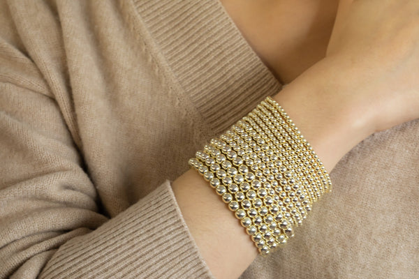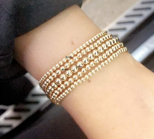 14k Dainty Light Gold Hematite Bracelet | Gold Bead Bracelet | Gold Ball Bracelet | Gold Hematite Beaded Bracelet