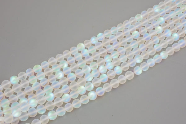 Gorgeous Aura Rainbow Synthetic Moonstone Quartz / Mermaid Stone Matte Round 6mm 8mm 10mm 12mm Full Strand 15.5" AAA Quality