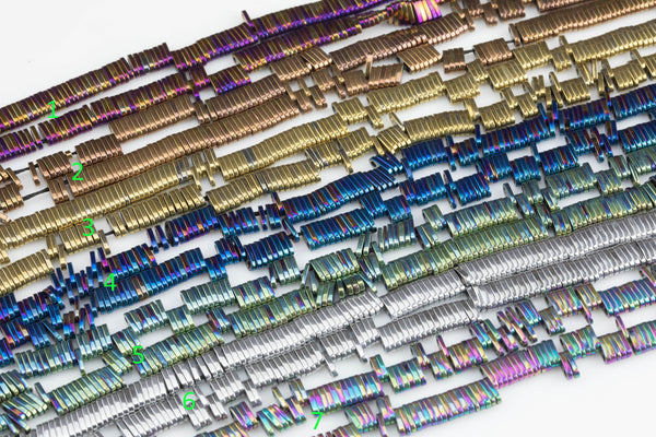 Hematite Tila style Shaped Beads- 2 Holes- 1x7mm- Perfect for Bracelets- 16 inches strand