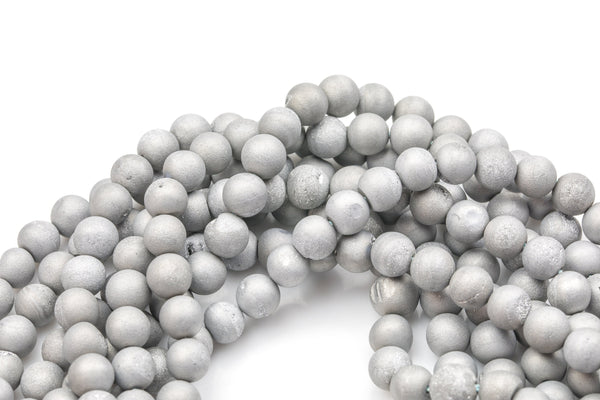 Natural DRUZY AGATE Beads-- Platinum Silver- 8mm, 10mm, 12mm. Full 15.5 inch strand Gemstone Beads