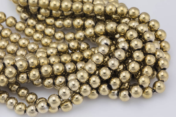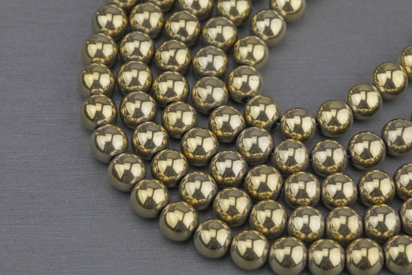 Titanium Pyrite- Light Gold Metallic HEMATITE Beads. Round Smooth. 2mm,3mm, 4mm, 6mm, 8mm,10mm or 12mm. Full Strand 16". AAA Quality